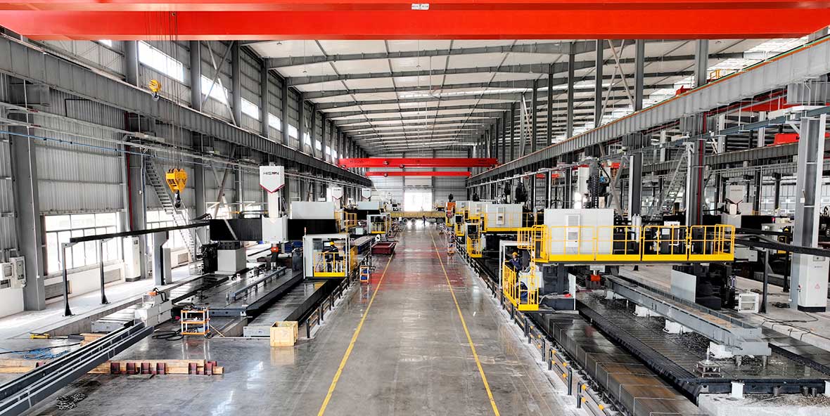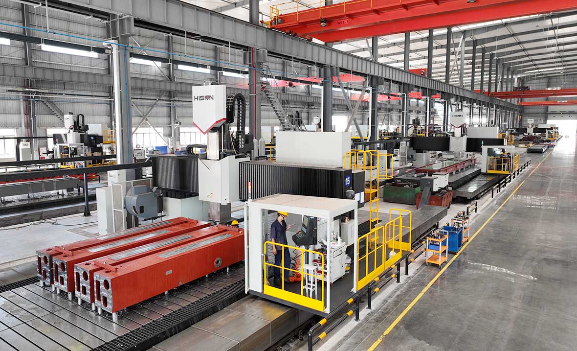 在佛山MK(中国)一站式服务平台装备的三号车间,近20台全新的五面体龙门加工中心形成了华南地区独树一帜的龙门加工集群。其8~18米的超长加工长度、3~4米的加工宽度、约2米的立体加工高度,主要应用于机架类、横梁类的大型结构件,包括大型铸锻件的加工。龙门加工中心具有刚性强、功率扭矩大、稳定性高的特点,且机床自带高精度系统,加工精度精确到0.01mm,相当于发丝直径的1/10。从切削到成型全程稳定输出,确保工件尺寸公差完美达标。