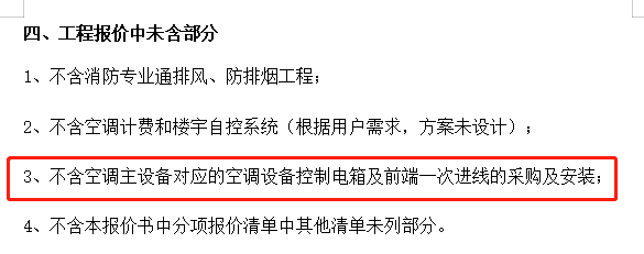 回复:空调配电箱由内装修单位负责,空调施工单位只负责出线安装含接线等工序。招标文件中招标范围为不含空调控制电箱,报价清单有空调配电箱,请明确报价是否需要空调配电箱。