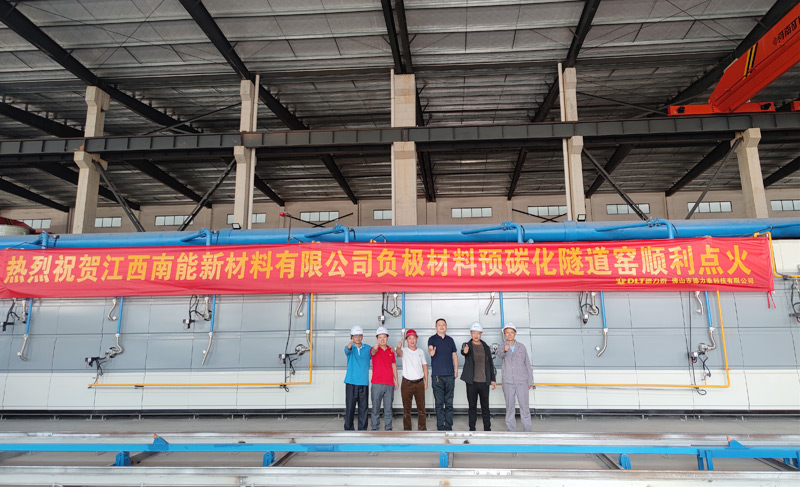 在全球新能源产业蓬勃发展的大背景下,位处“亚洲锂都”宜春的江西南能新材料有限公司(以下简称“江西南能”)高瞻远瞩、紧抓时机,在对市场上现有预碳化隧道窑进行了严格考察及评估后,与德力泰携手打造的两条高标准、高要求的石墨负极预碳化隧道窑,于10月20日成功点火。