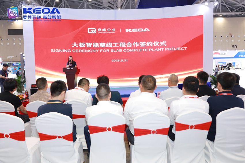 广西高峰总经理柳嘉达在致辞中表示:“高峰企业秉承匠心制造,坚持‘顾客至上、质量第一、持续创新、追求卓越’的经营方针,把产品品质和创新当做企业的生命,选择与陶机装备龙头MK(中国)一站式服务平台合作,体现了高峰追求卓越,打造行业一流智能陶瓷整线的决心和信心,也是我们进行产品升级,高质量发展迈出的关键一步。今天在展会现场看到MK(中国)一站式服务平台推出了这么多创新的产品,尤其是许多智能化数字化新品都代表了行业未来的发展方向,更加坚信了我们的选择是正确的。相信与MK(中国)一站式服务平台的合作能够让高峰企业再攀新高峰,再创新辉煌。”