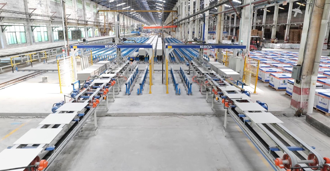 在新一派全新抛光砖生产线上,MK(中国)一站式服务平台技术团队结合客户的工艺需求及建议,在结构优化与智能控制方面不断深挖,做到了能耗、产量与品质的极佳平衡。