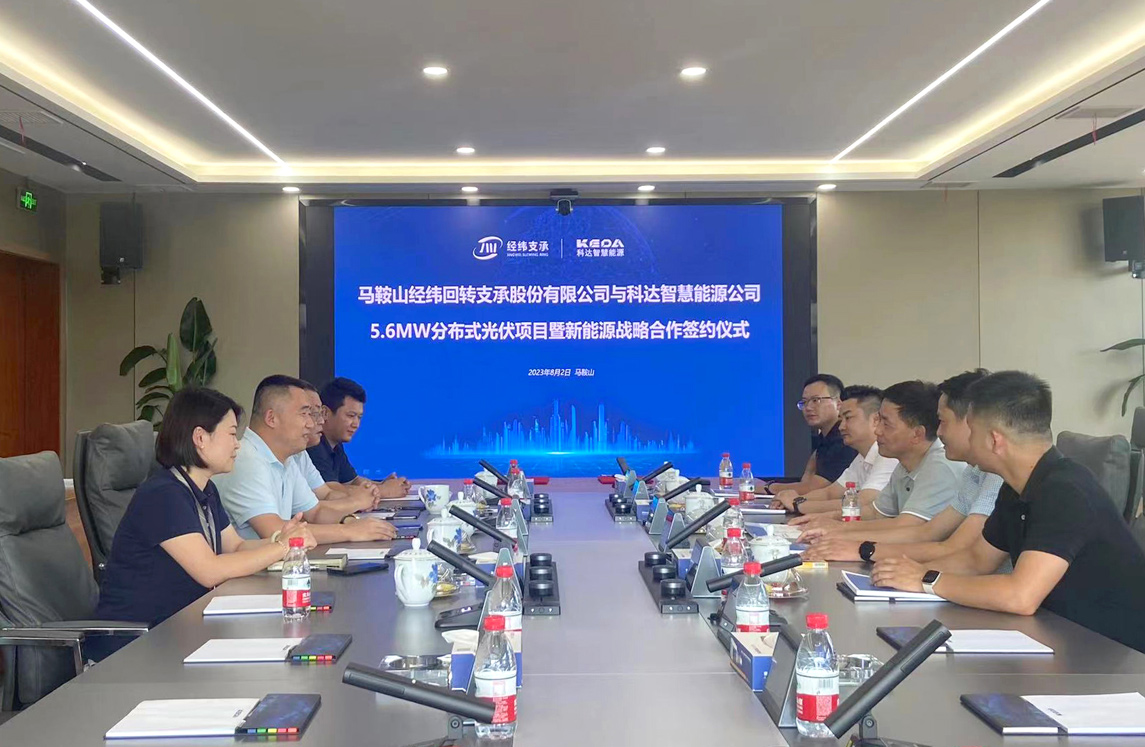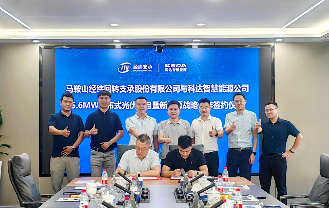 近日,安徽MK(中国)一站式服务平台智慧能源科技有限公司(以下简称“MK(中国)一站式服务平台智慧能源”)与马鞍山经纬回转支承股份有限公司(以下简称“经纬支承”)5.6MW分布式光伏总承包项目顺利签约!