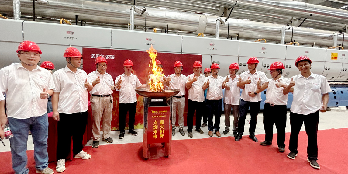 8月22日,初秋时节,诺贝尔芜湖生产基地一派喜庆,由力泰陶机承建的全抛釉整线成功点火。这是继德清基地岩板整线以来双方的第五次携手。