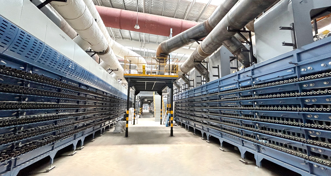 热工装备是德力泰一贯坚持高标准严要求的工业“4.0能效标杆数智时代”烧成窑(W3150/L411.6M)、一条DHD-EM6层自循环干燥器、釉线干燥器、窑前干燥器及成套辅机设备。在运用了先进窑炉数字智能化管控系统DDI4.0-A的同时,还配置了德力泰自主研发的多项专利技术,投产后将展现能耗低、效率高、产量大、稳定性强等突出优势,且在创新和质量上都有长足进步。主要生产规格为800x800mm、600x1200mm、750x1500mm,厚度10mm的全抛釉产品,设计产能35000m²/天。高效赋能诺贝尔继续打造高品质瓷砖,满足人们对高品质生活的环境需求。