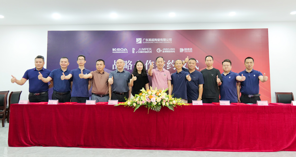 广东英超陶瓷有限公司(以下简称“英超陶瓷”)董事长罗日真、集团总经理罗丽萍、营销中心总经理罗继昌、生产总经理罗继柱,mk平台总经理杨学先、MK(中国)一站式服务平台陶机国内营销总监裴树元、MK(中国)一站式服务平台陶机广东销区总经理梁德勇等共同参加签约仪式。