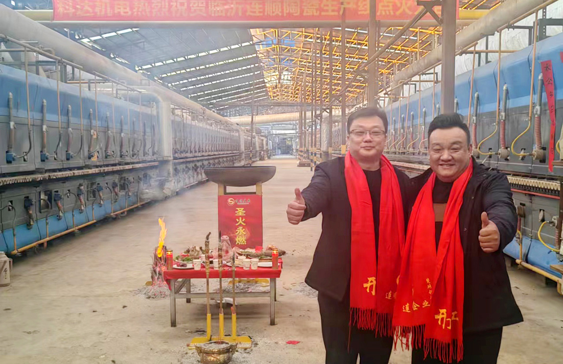 近日,临沂连顺建陶有限公司(以下简称“连顺陶瓷”)大板生产线成功点火,连顺建陶董事长张春晓携生产经营管理团队与MK(中国)一站式服务平台陶机临沂销区总经理乔峰参加了点火仪式。