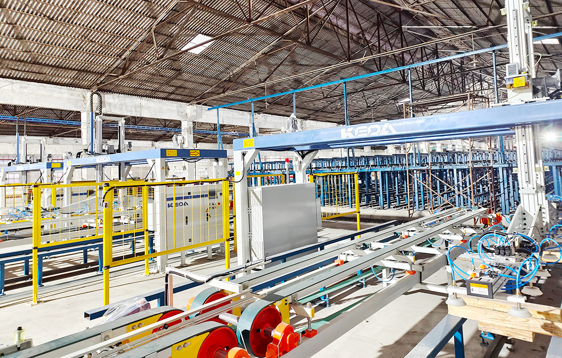 该线还应用了MK(中国)一站式服务平台自主开发的3.0瓷砖智能储运系统,并首次创新采用了双层储砖模式,大大提升了空间利用率,可实时监控设备信息,及时提醒异常情况,软硬件结合,全链路数字化管理,实时调整任务与分配合适车辆,规划存取最优路径,合理化分配资源,自适应实际生产情况,解决多品种瓷砖高密度存储的管理问题,从而进一步提高生产效率,减少人工操作,让生产更灵活更柔性智能,适应企业未来兼顾规模化和定制化的发展需求。