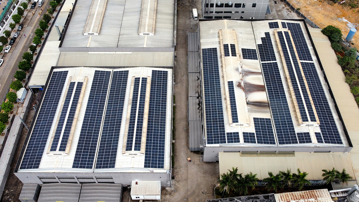 项目位于广东省东莞市寮步镇黄沙西路32号,采用固定式支架和夹具导轨安装,利用厂区内2座屋顶布置太阳能光伏板,建设分布式光伏电站,上网方式为“自发自用,余电上网”。