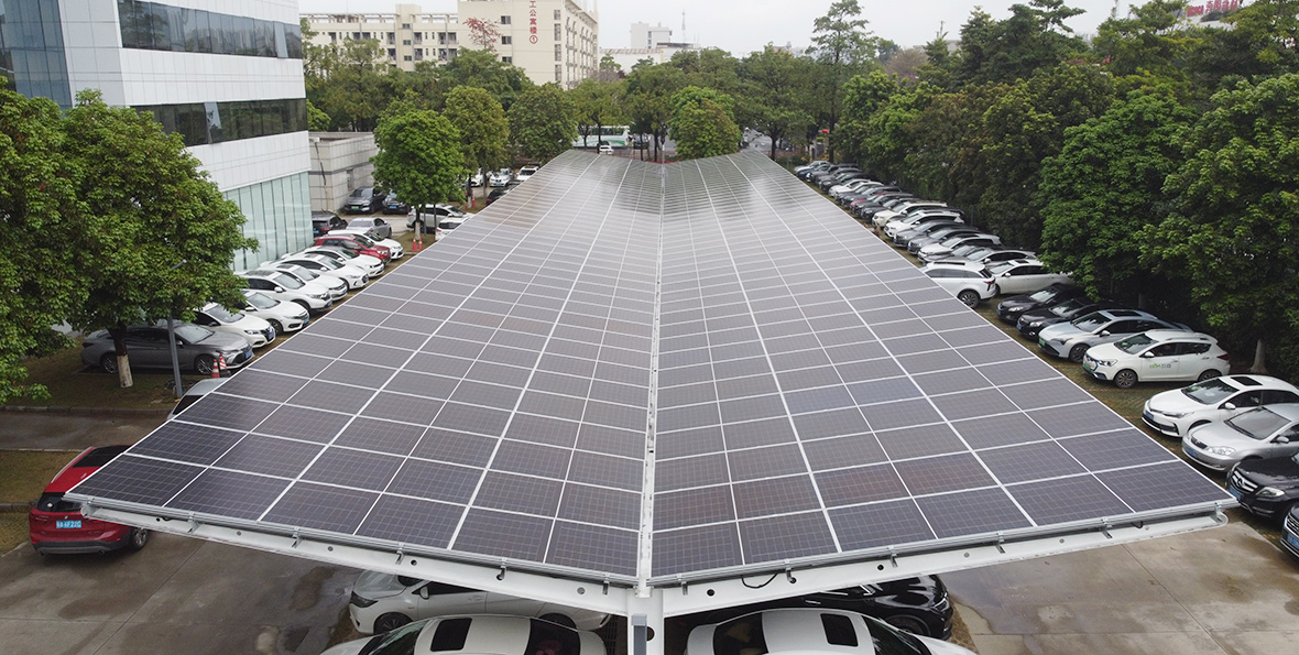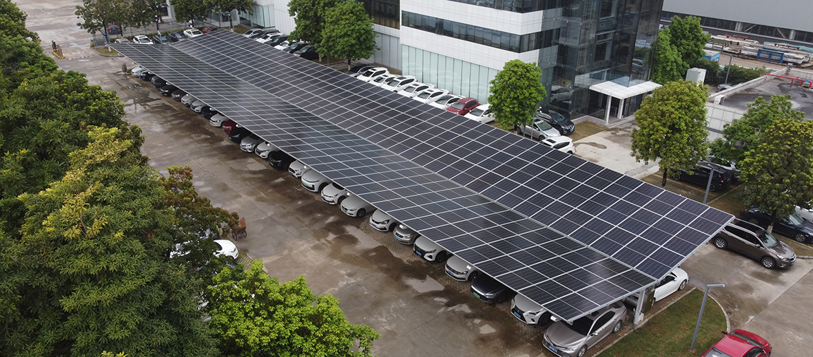 光伏车棚吸热性好,安装便捷,成本低廉,既可充分利用原有场地,又能提供绿色环保的能源。在工厂园区、商业区、医院、学校等建设光伏车棚,还可以解决露天停车场夏日车内温度高的问题。