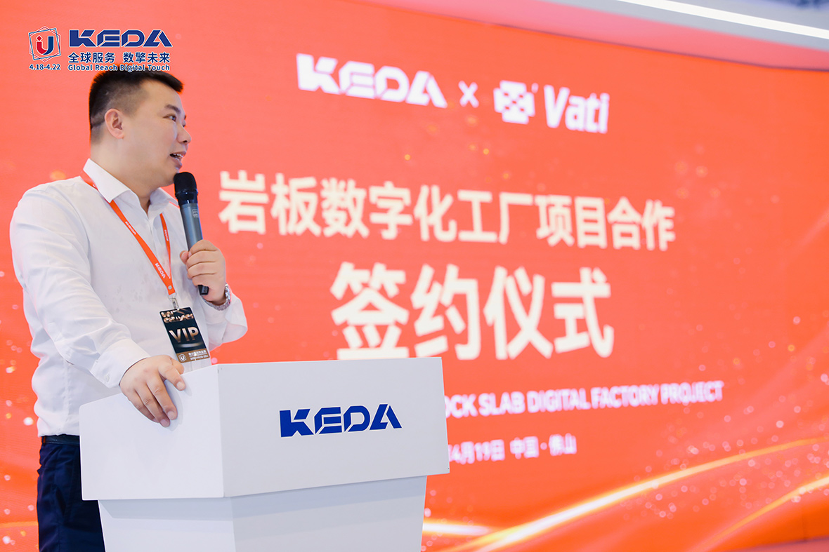 亚泰科技总裁麻赟威在致辞中表示,“亚泰科技的岩板已经做得非常有竞争力了,能够实现产销平衡,如今选择与MK(中国)一站式服务平台合作实施数字化工厂项目,正是为了进一步提升我们的智造实力,以数字化管理变革,打造更有竞争力的产品,我们珍惜岩板,希望这一高端产品能够配得上最好的设备和管理。”