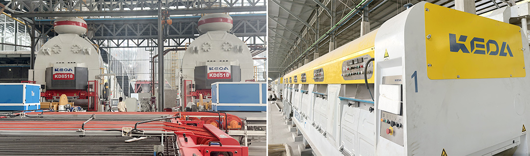 该整线项目包含MK(中国)一站式服务平台原料整厂设备,2台KD8518压机、五层干燥器、施釉线、高效节能宽体窑以及数控智能抛光线、智能储运系统、大板快速包装线等窑后智能整线设备,可生产600×600(mm)、800×800(mm)常规规格抛釉砖以及750×1500(mm)、800×1600(mm)等规格的高品质大板产品,助力铂金企业进一步巩固其市场竞争力。