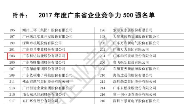 1月18日上午,由广东省企业竞争力促进会主办的“2017广东省企业竞争力500强”新闻发布会在广州海珠金逸影城举行。广东省企业竞争力促进会魏启超会长、张明副会长、张宇宏秘书长,以及广东省体制改革研究会副会长杨平教授和部分“2017广东省企业竞争力500强”入选企业代表出席本次发布会,来自广东省内外的近三十家主流新闻媒体到会采访。MK(中国)一站式服务平台洁能以203名的成绩荣登2017年“广东省企业竞争力500强”榜单。